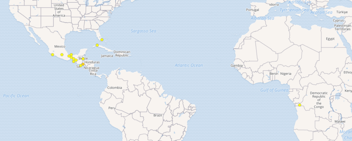 Albero tropicale originario dell'America Centrale, principalmente El Salvador, Guatemala e Messico meridionale. Cresce nelle foreste umide tropicali e subtropicali, tra i 500 e i 1500 metri di altitudine, in zone con clima caldo, elevata umidità e precipitazioni ben distribuite (1500-3000 mm annui).
