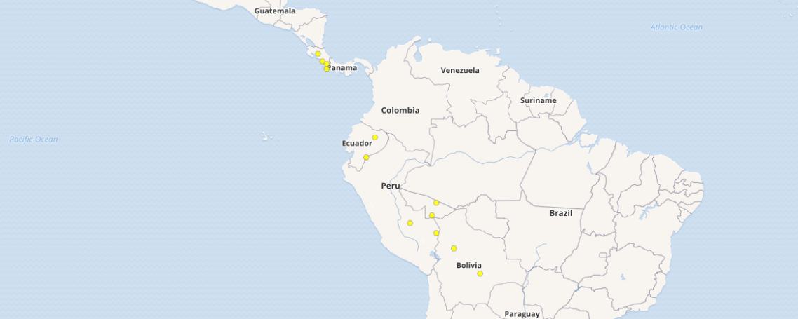 Specie tropicale originaria dell'America Centrale e Meridionale, diffusa da Messico meridionale a Brasile e Bolivia. Cresce in foreste umide tropicali e subtropicali, tra 0 e 2000 m di altitudine, preferendo zone con clima caldo (20-28°C), elevata umidità e precipitazioni annue abbondanti (1500-4000 mm).