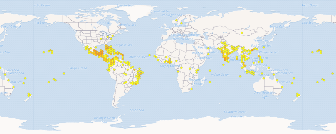 TUTTO L'ANNO NEI TROPICI, CON PICCHI A FINE INVERNO-INIZIO PRIMAVERA (FEBBRAIO MARZO APRILE)